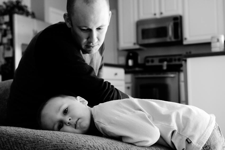 It’s hard to believe that I photographed Katie and Travis’ wedding five years ago now. To see them with their two young children, you’d think they’d been parents forever. The kids are the spitting image of Katie and Travis and it’s fun for me to see that since I know them only from the context of their wedding. It’s also fun for me to see that Ryan loves to look at mommy and daddy’s wedding album. Brings back memories! And, it’s nice to make some new ones and have them photographed. Especially bath time and snuggle-on-the-bed time.