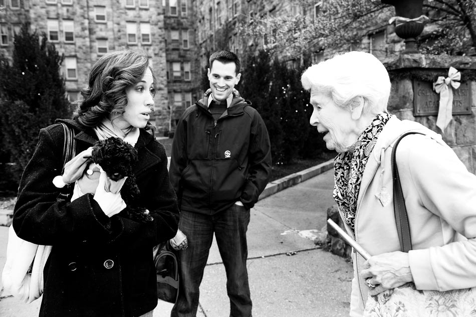 Take a walk anywhere with a puppy and you’ll be stopped by just about everyone, oohing and aahing over the cuteness. That’s what Jeni and Robbie and I did with their new fur baby Elphie while they were in town visiting family for Christmas. It was great to catch up with them again (I’ve shot three weddings in their family now!) and, of course, to meet the adorable Miss Elphie puppy (who, appropriately enough, was dressed as an elf)! And no Short North photo session is complete without Jeni’s Ice Cream! Especially when you’re photographing a girl named Jeni!