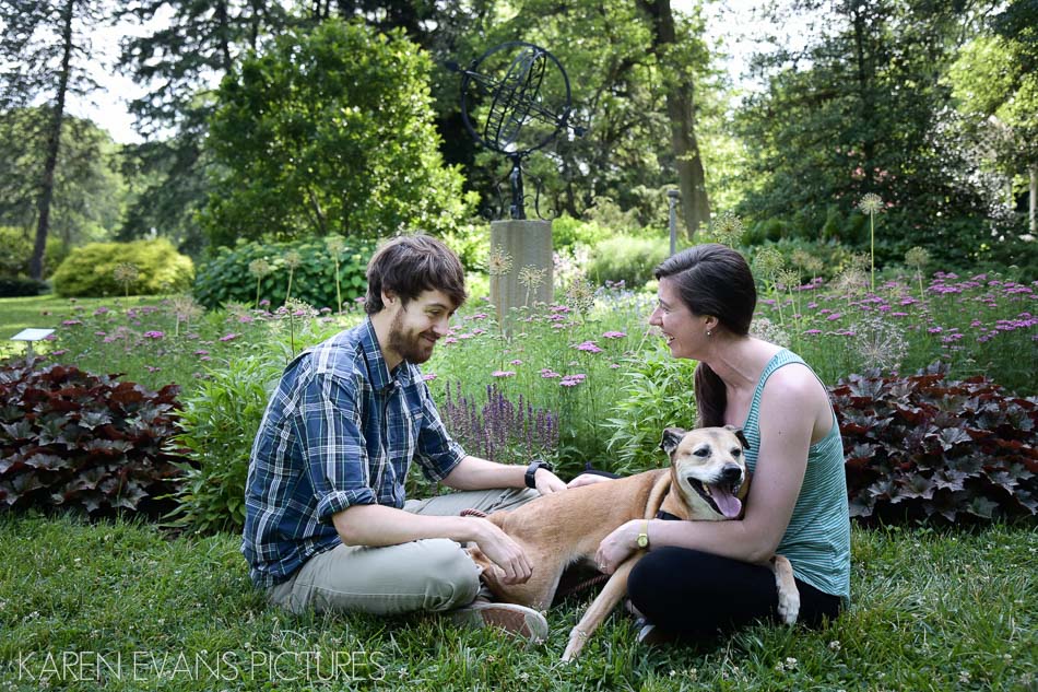 Rebecca and Jay and their adorable dog made the trip here from their home in West Virginia so we could visit the Whetstone Park of Roses in Clintonville for their engagement session. After a sniff-fest with a pack of dogs on a walk, we wandered around through the beautiful park and took advantage of all the different areas, from woods and water features to blooms and blooms of roses. Have a look!